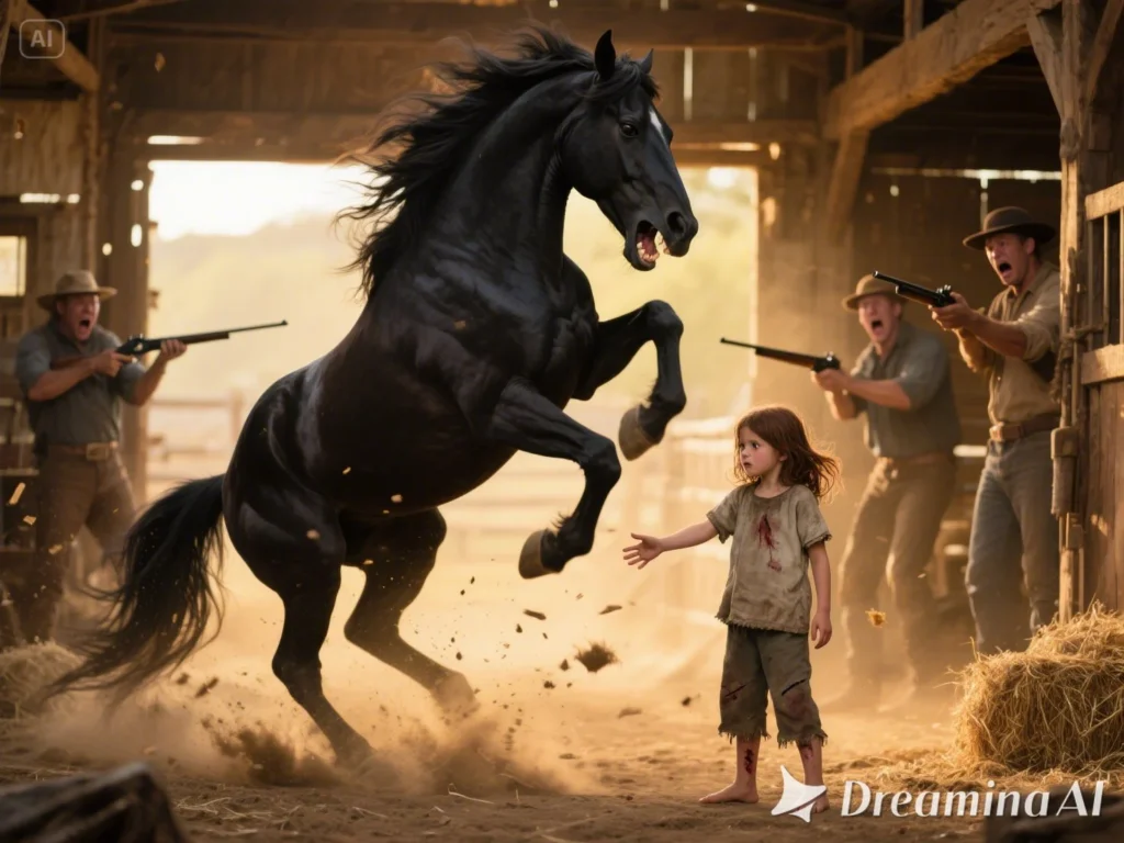 La niña seguía ahí, de pie junto al semental negro. Su mano pequeña descansaba sobre el cuello del animal. El caballo, ese mismo que había enviado a dos hombres al hospital, tenía los ojos cerrados. Respiraba lento. Profundo.