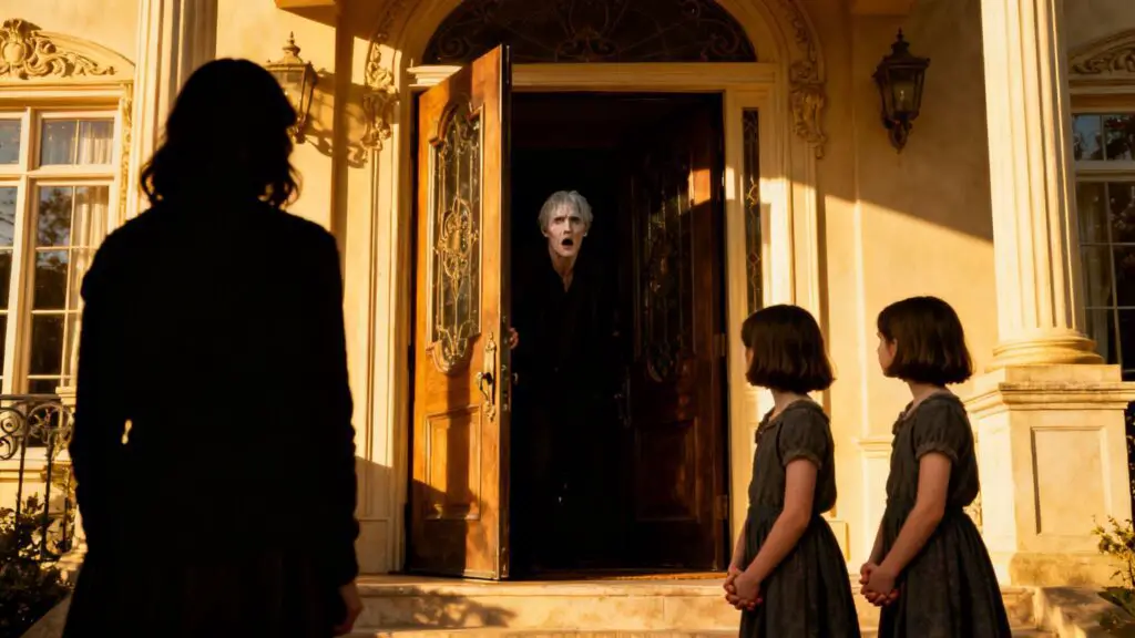 Con sus dos hijas, Luna y Sol, idénticas y curiosas, tomadas de la mano, se acercó a la puerta principal. Las pequeñas miraban el lugar con asombro infantil.