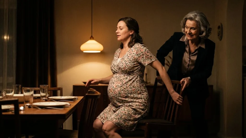 El sonido de la madera arrastrándose contra el porcelanato fue sutil, casi imperceptible debajo del ruido de los cubiertos, pero la sensación de vacío fue absoluta. No hubo tiempo de meter las manos. No hubo tiempo de proteger mi vientre.