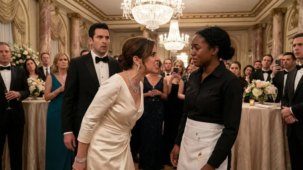"Mira mi vestido, criatura torpe," siseó Camila, su voz baja, pero amplificada por el silencio de la sala. "Este es un diseño exclusivo. Cuesta más de lo que ganarás en diez años trabajando en este mugroso oficio."
