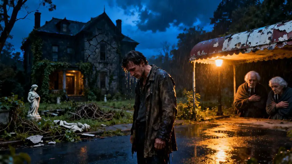 Sus ojos escudriñaron las ventanas, tratando de ver algo, cualquier señal de vida. Pero solo encontró el reflejo distorsionado de su propio rostro, bañado por la lluvia y la angustia.