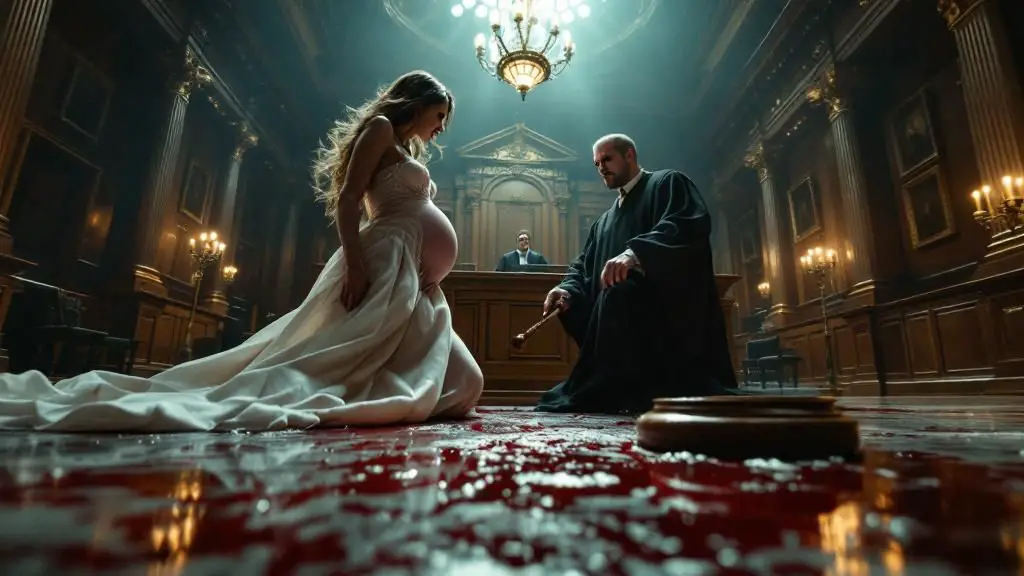 Elena soltó un gemido desgarrador, una mezcla de dolor físico y una angustia maternal indescriptible. Se desplomó en el suelo, llevándose las manos a la barriga, mientras un grito ahogado escapaba de sus labios. En cuestión de segundos, una mancha oscura comenzó a extenderse por su vestido de seda, tiñéndolo de un rojo ominoso. El caos estalló. La gente gritaba, los abogados se levantaban horrorizados, los guardias corrían hacia Isabella, quien ahora estaba siendo inmovilizada, sus ojos aún fijos en la mujer que se desangraba en el suelo.