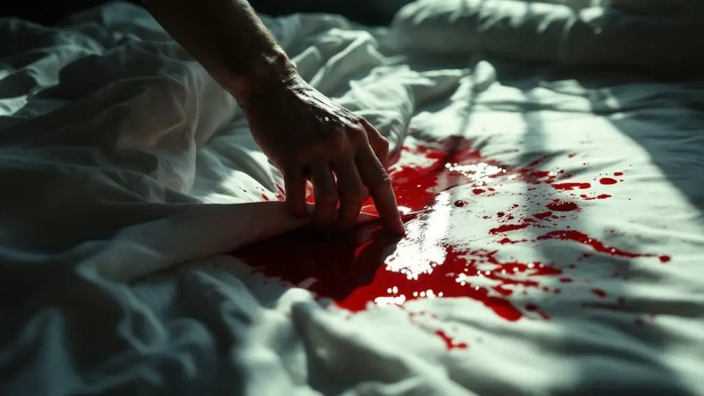 No era lo que esperaba. No era lo que nadie esperaría. Su mente, en un primer instante, saltó a la imagen más terrible: sangre. Pero al tocarlo, el líquido era denso, casi aceitoso, con un olor metálico y terroso que no era el de la sangre. Era un color que recordaba a óxido antiguo, a tierra mojada con algún mineral. La mancha no estaba sobre el colchón, sino que parecía emanar de él, como si algo debajo hubiese filtrado esa sustancia a través de la tela.
