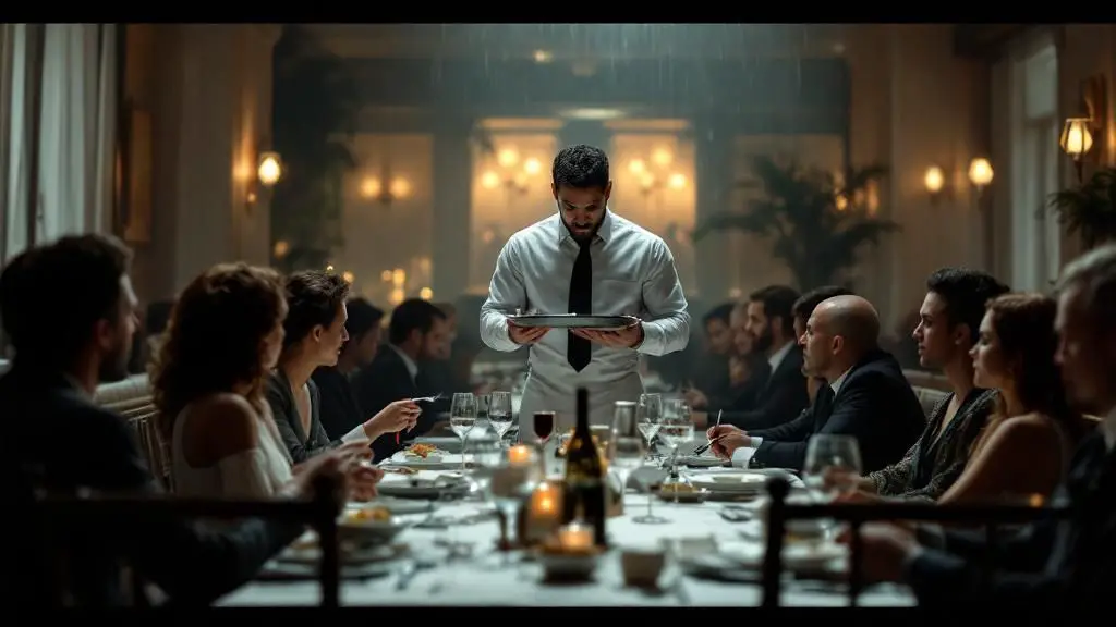 Era viernes por la noche, y el distinguido restaurante "El Dorado" bullía con el murmullo de conversaciones animadas y el tintineo de copas. Las risas se mezclaban con el suave jazz que sonaba de fondo, creando una atmósfera de lujo discreto y placer culinario. Juan, con su impecable uniforme blanco y negro, se movía entre las mesas con una agilidad casi coreográfica. Llevaba más de una década sirviendo en ese lugar. Cada bandeja que sostenía, cada sonrisa que ofrecía, era el resultado de años de esfuerzo y la esperanza de un futuro mejor.