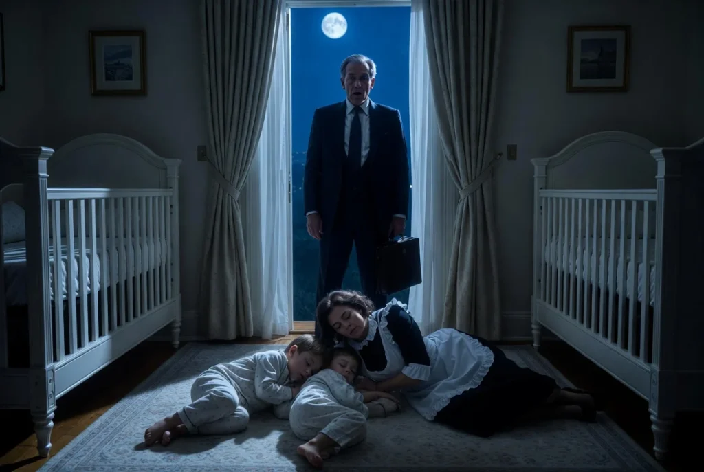 Marta había abierto los ojos y lo miraba desde el suelo, entre las dos cunitas de los gemelos. No se movió. No gritó. Solo lo observaba con una expresión que Robert jamás olvidaría: una mezcla de alivio y terror absoluto.