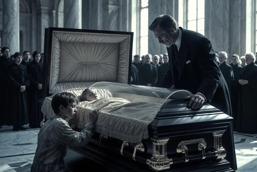 La mirada del millonario pasó del chico al ataúd, del hilo rojo que el joven señalaba a la cara pálida de su hija, Sofía, que parecía dormir en la caja. Un escalofrío helado le recorrió la espalda, erizando cada vello de su nuca. Algo en la desesperación del joven, en la convicción de sus ojos, sonaba demasiado real para ser la locura de un intruso. Los murmullos de la gente se hicieron ensordecedores, susurros de incredulidad y miedo.