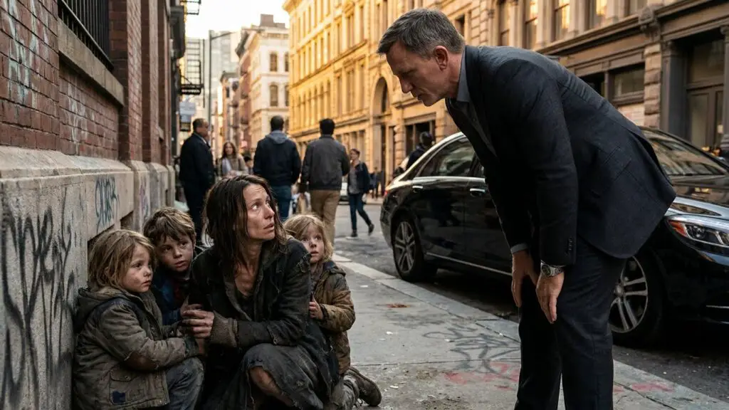 Llevaba meses durmiendo en la calle, con sus dos hijos, Mateo de seis y Ana de cuatro años, aferrados a ella como a la última balsa en un mar de desesperación. Cada noche, el frío se colaba por sus huesos, y el hambre, una punzada constante, no perdonaba. Las miradas de lástima o, peor aún, de desprecio de la gente al pasar, eran su día a día. Había perdido todo: su hogar, su trabajo, su dignidad y, a veces, incluso la esperanza. Pero nunca a sus pequeños, que eran su única razón para seguir respirando.