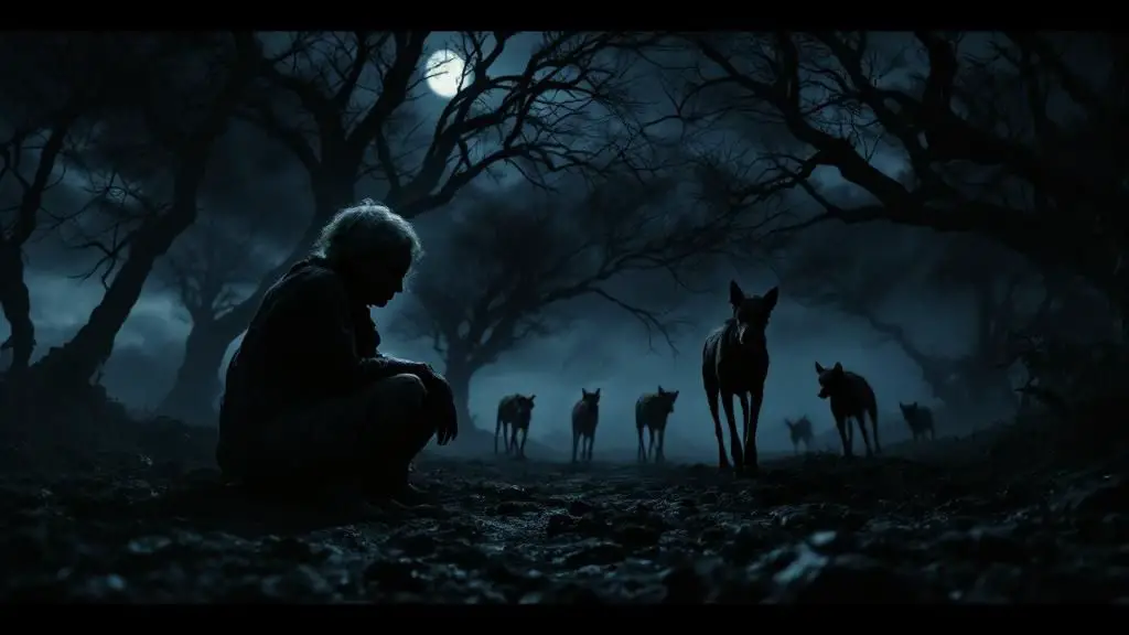 Eran los perros callejeros del pueblo, conocidos por su ferocidad, por sus ojos brillantes en la oscuridad.