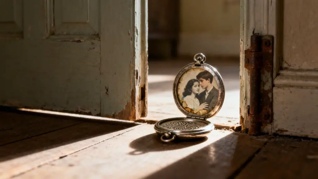 Un relicario de plata, antiguo y trabajado, yacía en el suelo, como si hubiera caído de una mano temblorosa.