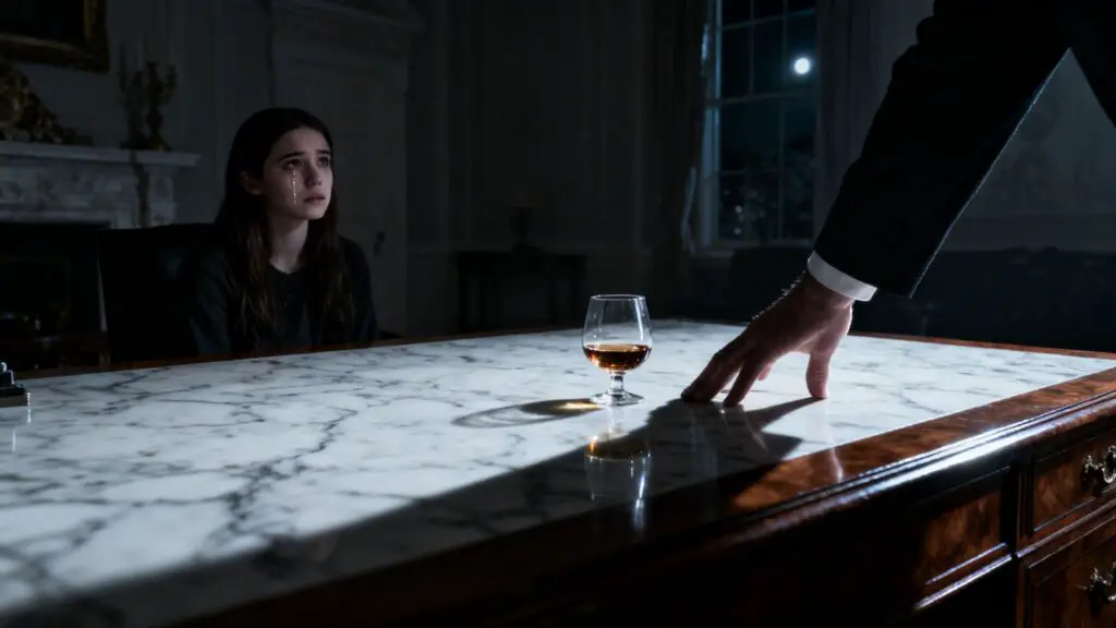 El Padrino dejó su copa sobre la mesa de caoba. El sonido fue un eco nítido en el silencio. Su mirada se clavó en la de María, intensa, indescifrable, como un depredador evaluando a su presa. Un silencio pesado llenó la habitación, tan denso que María sentía que no podía respirar. Cada segundo se estiraba en una eternidad. Luego, una de sus cejas se arqueó lentamente, un gesto mínimo, casi imperceptible.
