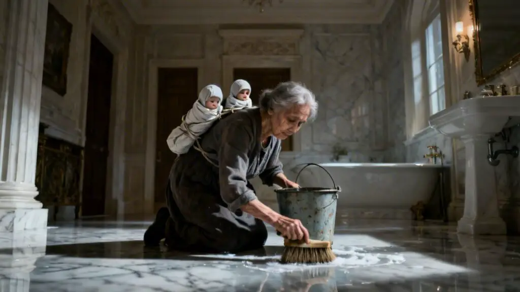 ¿Su madre? ¿Limpiando el baño como una sirvienta? ¿Y con dos bebés a cuestas?