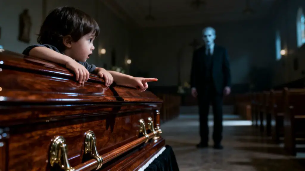 Pero las palabras de Ricardo no calmaron a nadie. La semilla de la duda ya estaba sembrada. Los ojos de los presentes se alternaban entre la inocente Sofía y el ahora sudoroso Ricardo. La imagen de Sofía, sentada en el ataúd de su padre, señalando al tío, se grabaría para siempre en la memoria de todos.