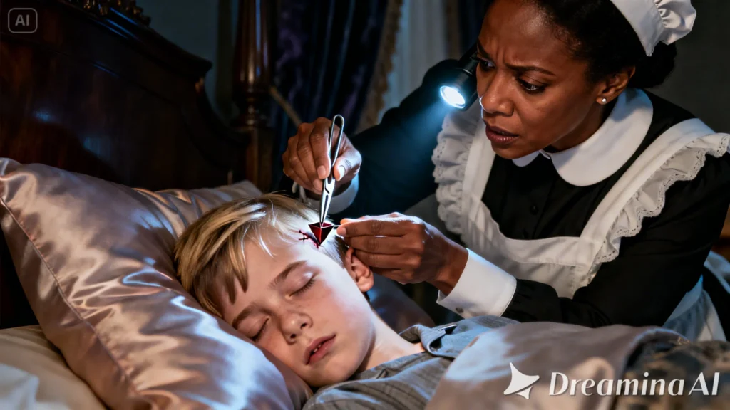 Con un temblor en las manos, separó con cuidado los mechones. Lo que vio era del tamaño de la cabeza de un alfiler, pero tenía un brillo artificial. Era oscuro, casi negro, y parecía estar perfectamente nivelado con la piel.