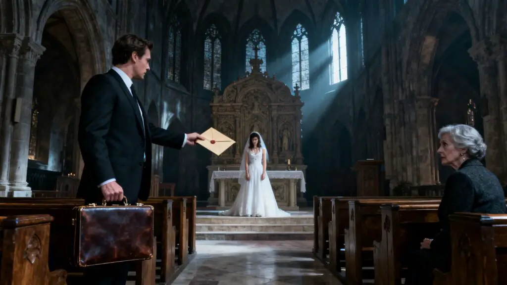 El hombre ignoró al sacerdote. Mantuvo su mirada fija en Elena, quien, con manos temblorosas, tomó el sobre. El papel era frío y pesado.