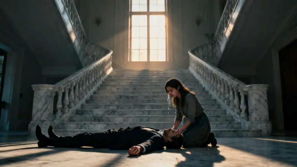Sofía apareció en el umbral del salón, y al verlo tendido, inmóvil, su rostro se transfiguró. La palidez invadió sus mejillas, sus ojos, grandes y oscuros, se llenaron de un terror silencioso. No hubo gritos histéricos. No corrió a buscar ayuda de inmediato.