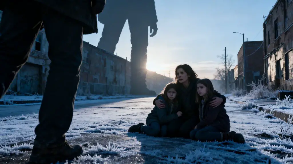 Sus ojos se fijaron en sus hijas, que se acurrucaban una contra la otra, tiritando. Ana tenía los ojos cerrados, Sofía temblaba levemente. Su desesperación era palpable, visible para cualquiera.