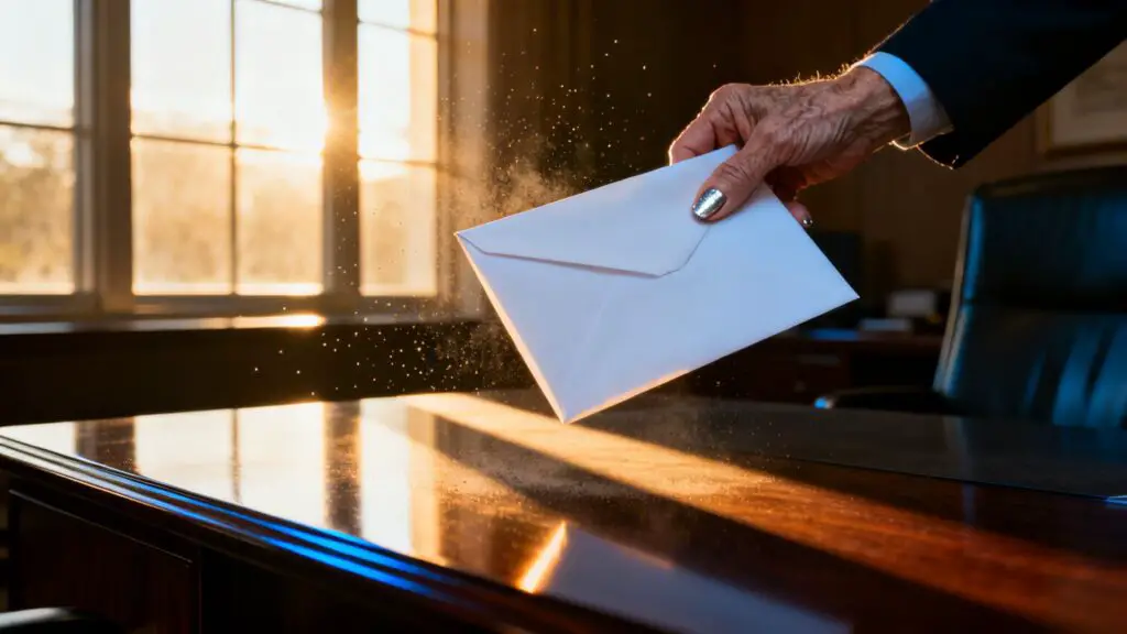 Pero la mesa estaba limpia, salvo por un sobre blanco.
