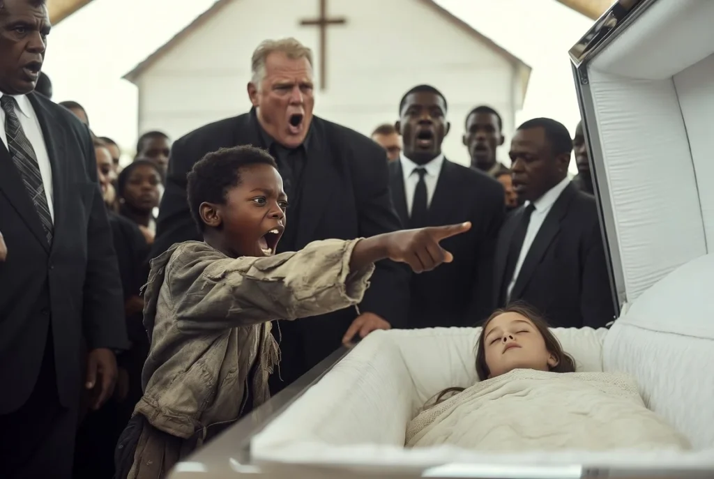 Con la voz quebrada y el aliento cortado, el niño gritó, señalando el ataúd con un dedo tembloroso: "¡No la entierren! ¡No, por favor! ¡Su hija Sofía… ella no está muerta!"