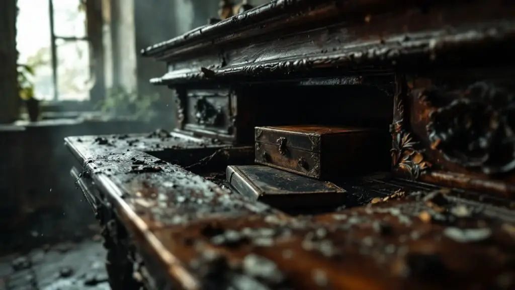 Su corazón retumbaba en su pecho como un tambor. Se arrodilló, extendiendo una mano temblorosa. Justo cuando sus dedos rozaron la tapa de la caja, sintiendo la madera pulida y fría... un escalofrío le recorrió la espalda. Algo le decía que lo que estaba a punto de descubrir no era un simple tesoro, sino una puerta a un pasado peligroso.
