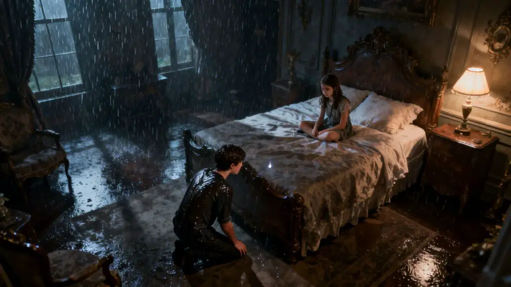 Adentro, Sofía no dormía. Estaba sentada en el borde de su cama, envuelta en una manta de seda, mirando fijamente la lluvia golpear el cristal. Su rostro, en la penumbra, era una máscara de melancolía.