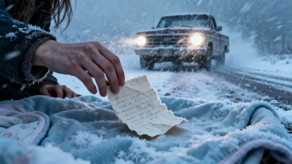 Y fue entonces cuando Thomas vio la nota arrugada, casi congelada, que la mujer sostenía con la otra mano. La extendió hacia él con un temblor incontrolable.