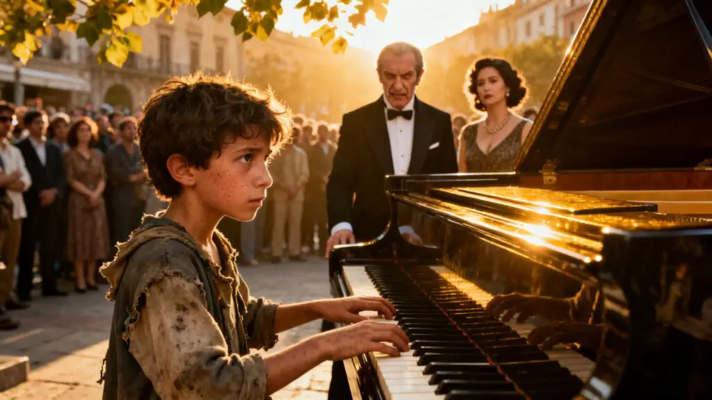 Mateo se levantó de la banqueta, su mirada serena. Había demostrado que el talento no se compraba, ni se juzgaba por la ropa.