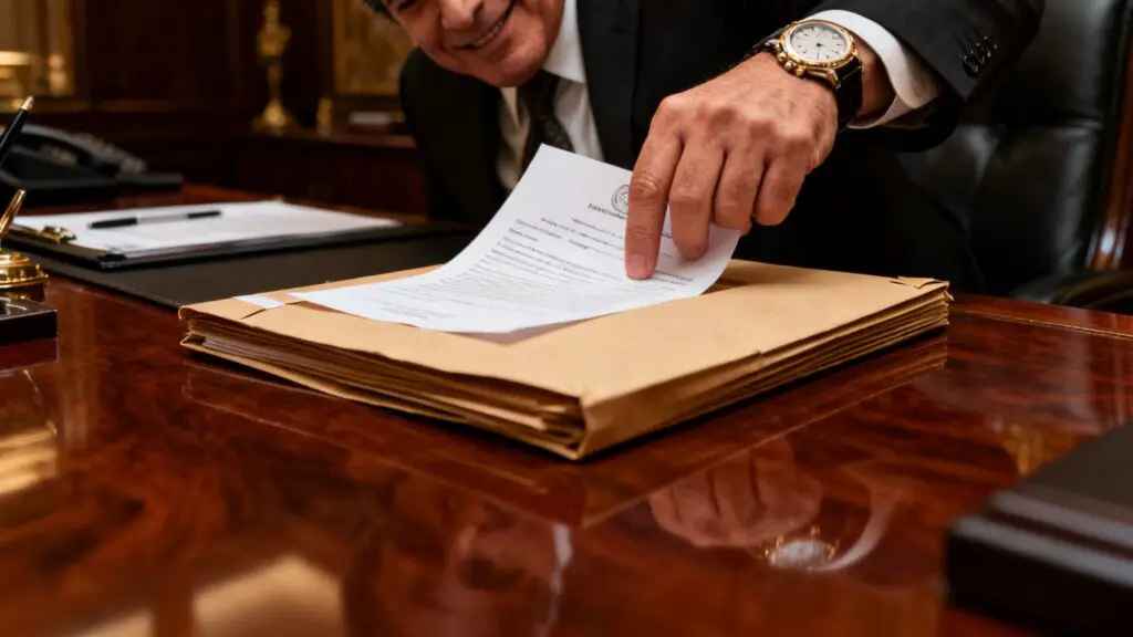 A las ocho en punto, la puerta de la oficina de Don Ricardo se abrió. Él la miró, con esa sonrisa burlona que ya le era familiar, que le helaba la sangre. Tenía un sobre grueso en la mano, un sobre de manila de color marrón que parecía contener el peso de su destino.