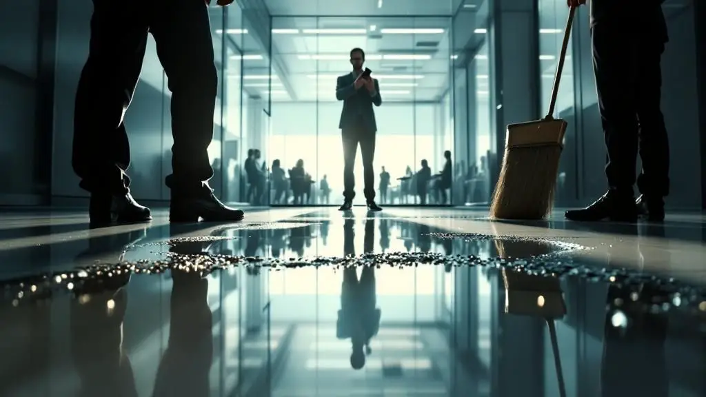 La luz de la mañana, filtrándose por los amplios ventanales de la Corporación Veritas, prometía un día más de monótona rutina. Para Don Ramón, el veterano conserje, cada jornada era un eco de la anterior. Sus manos, curtidas por décadas de trabajo honesto, deslizaban la escoba con un ritmo pausado y metódico sobre el pulido suelo de mármol. Era un hombre de pocas palabras, con el rostro surcado por arrugas que contaban historias de una vida sencilla pero digna. Su uniforme, aunque limpio, delataba el paso del tiempo y el uso constante.